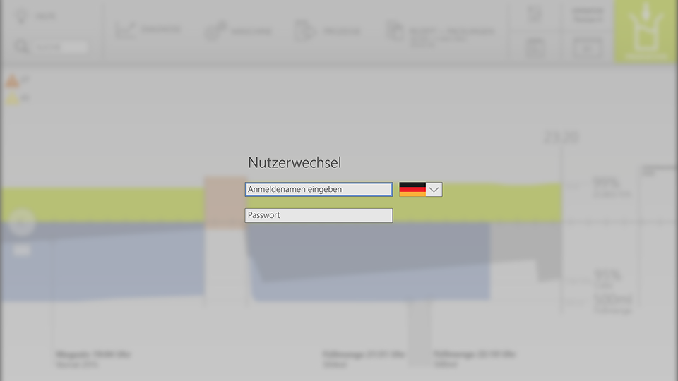 user login screen, with a minimum GUI elements for an intuitive interaction for the operator
