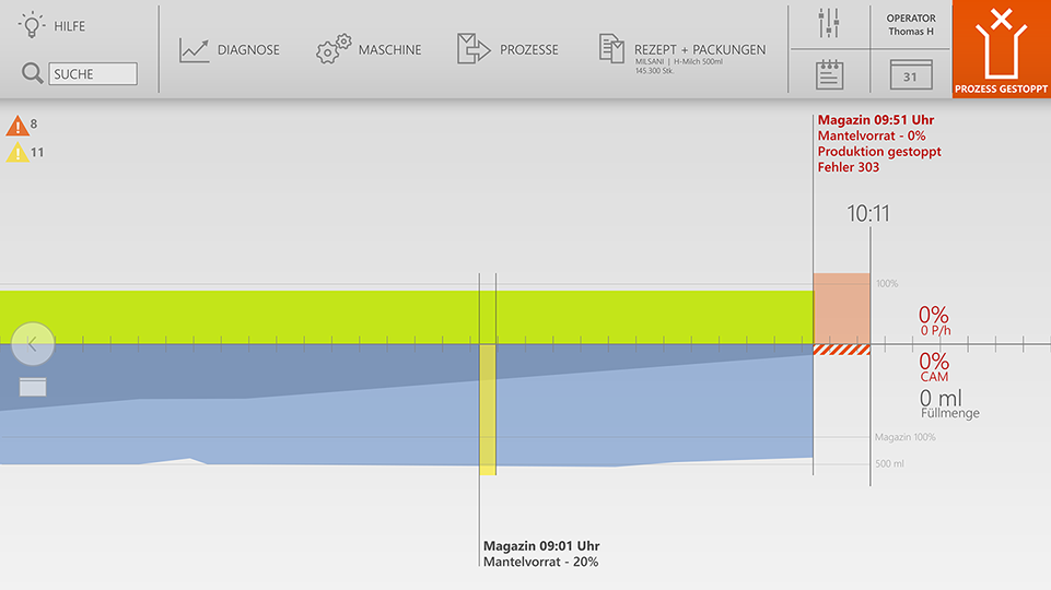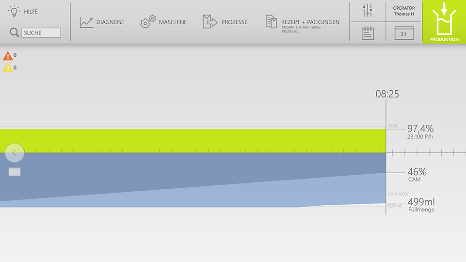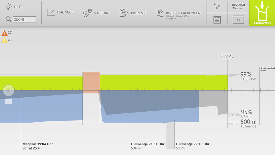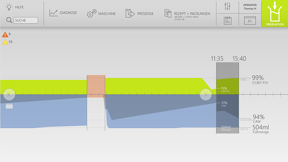 The core of the novel HMI is a time axis, which makes the entire production process comprehensible and predictable.